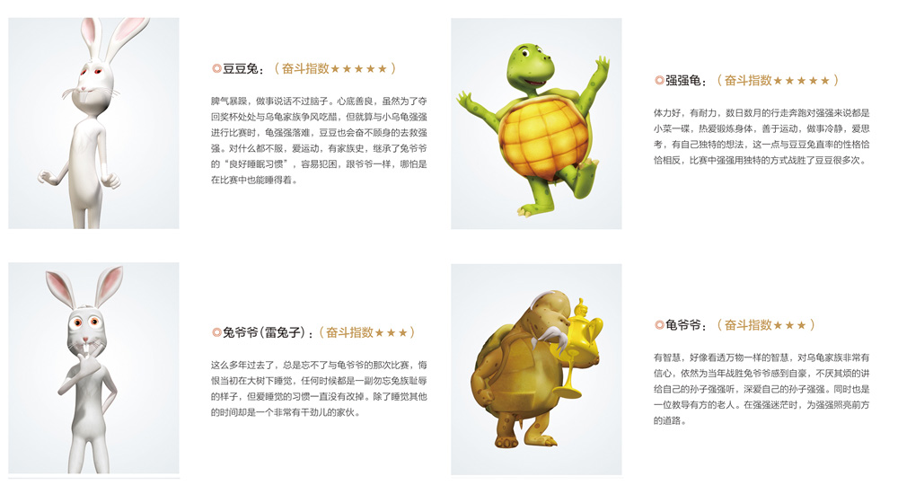 《龜兔賽跑后傳》是山東豆神動漫有限公司研發(fā)的60集原創(chuàng)三維數(shù)字動畫,影片以伊索寓言《龜兔賽跑》為基礎(chǔ),將現(xiàn)代新的時代背景、思想和元素引申到龜兔賽跑的后續(xù)故事之中,整體以競技為主線發(fā)展為分為競賽篇、親情篇、學(xué)習(xí)篇、就業(yè)篇、管理篇、社會篇六個單元。每個單元都以動物世界的視角映射出當(dāng)代人類的社會,并引導(dǎo)觀眾分辨是非和有益的啟示、借鑒,將故事與道理糅合,或潛在、或顯在地包含一定的教育意義,整片體現(xiàn)對真、善、美的追求,是一部具有娛樂性和教育功能的三維動畫片。