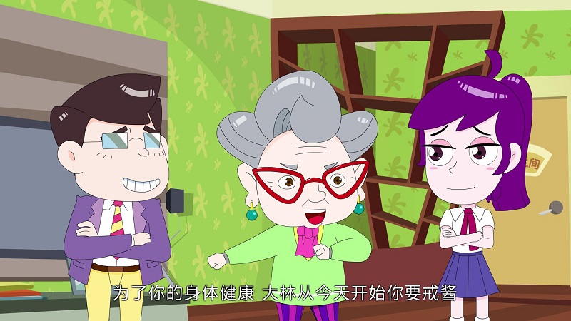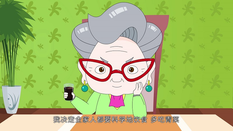 在幫助爺爺戒醬的過(guò)程中,奶奶決定全家都要科學(xué)飲食,多吃青菜。