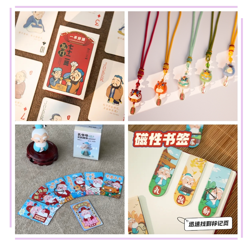 而《孔門72賢撲克牌》則實現(xiàn)了歷史人物的“卡牌化重生”,讓72位夫子學生化身為撲克牌上的生動形象,讓傳統(tǒng)文化在日常娛樂中悄然傳承。這種將厚重歷史以二維插畫的輕松方式復刻,贏得了現(xiàn)場觀眾的連連稱贊。
